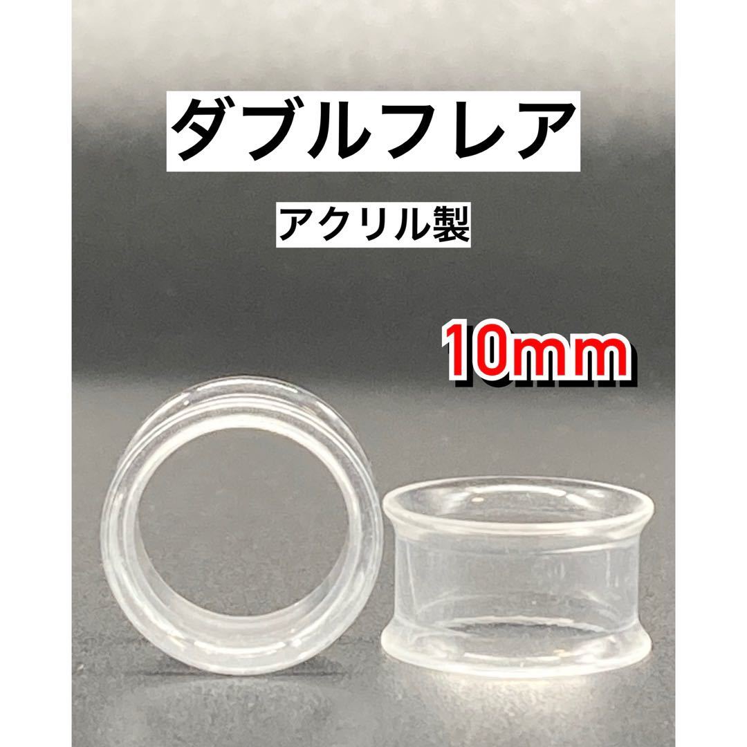 - ボディピアス ダブルフレア 拡張器 トンネル アクリル クリア 10mm 00g