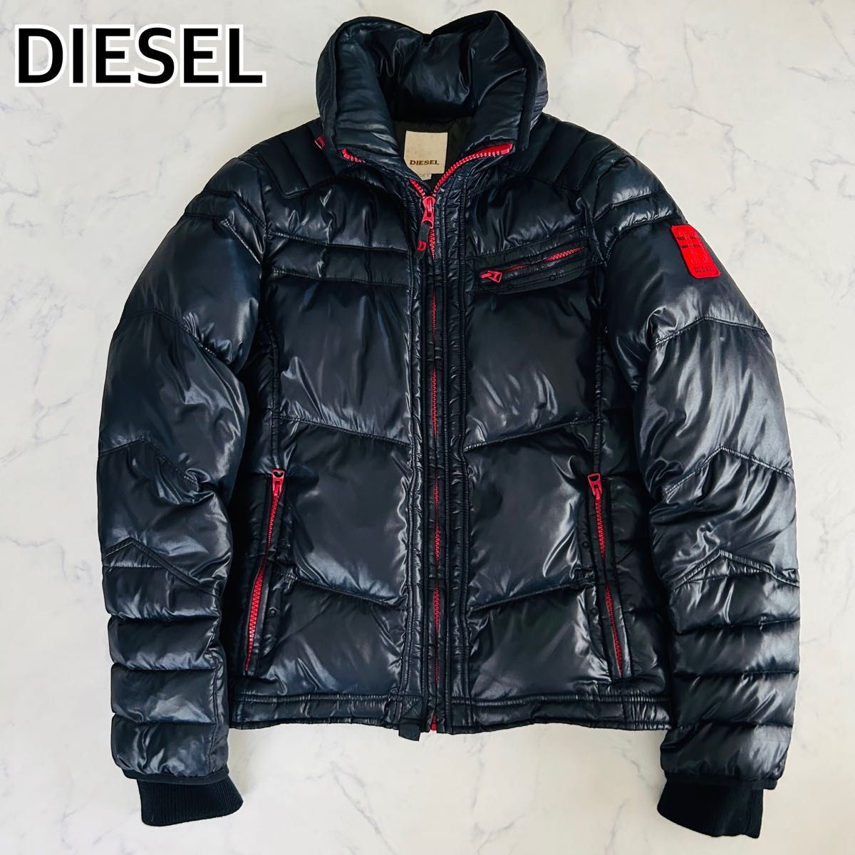 - DIESEL ディーゼル ダウンジャケット アウター Lサイズ ライダース 赤ジップ 肉厚 ロゴジップ ロゴパッチ リブ袖 ブラック 黒