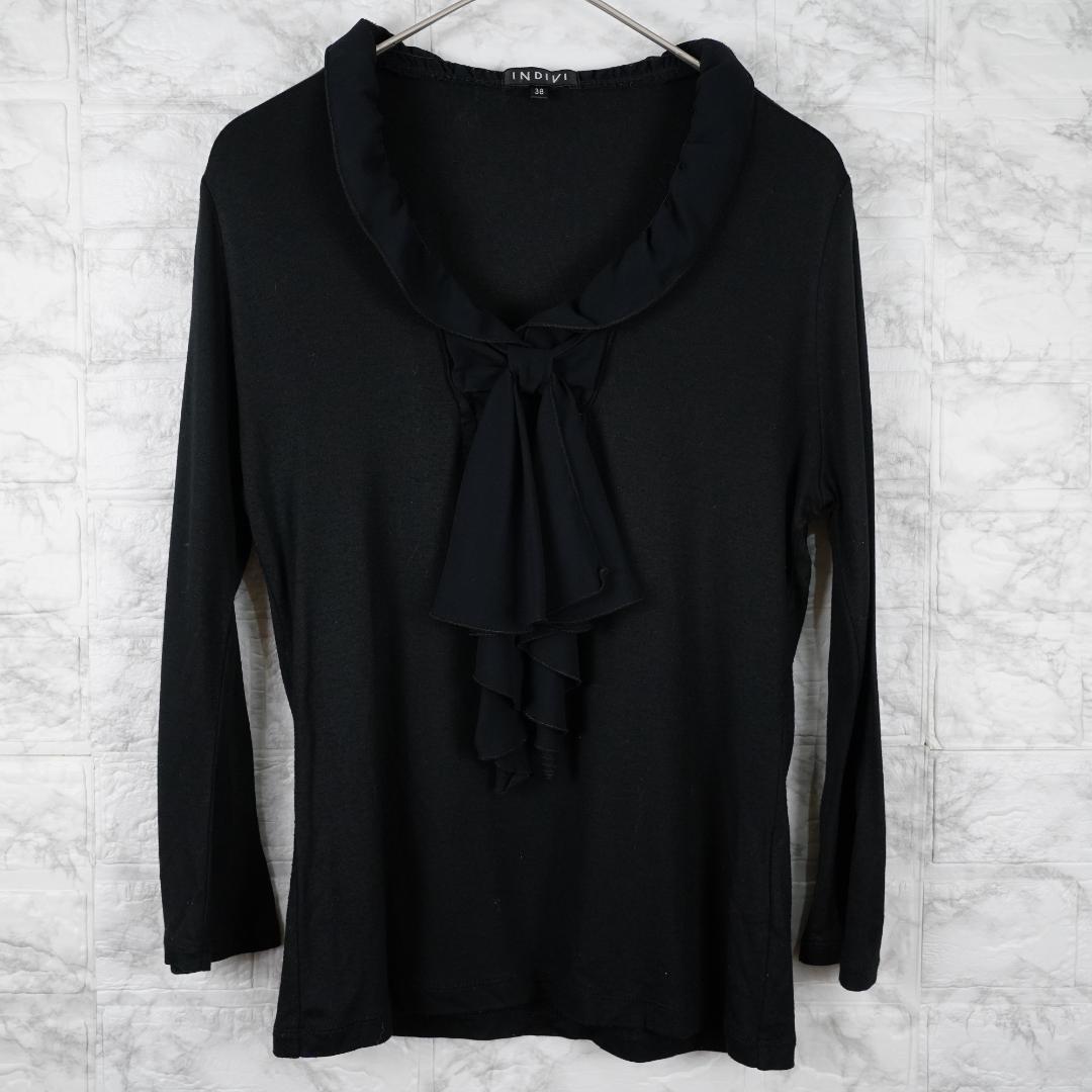- INDIVI シャツ ブラック #38 レーヨン リボン