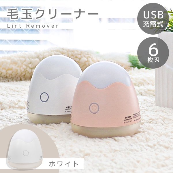 - 【送料無料】電動毛玉取り器 毛玉クリーナー 6枚刃 高速回転 充電式 ナイトライト付き 毛玉取り機 洋服ブラシ クリーナー セーター 白
