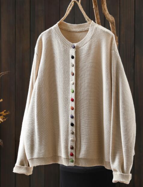 - 人気推薦カーディガン アウター 羽織物 トップス チュニック ゆったり 綿100% ナチュラル カラフルボタン