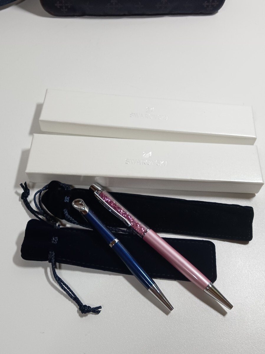 - 未使用 SWAROVSKI ボールペン スワロフスキー 筆記用具 ピンク 青 2本ケース付き