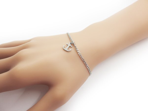 > ステンレスチェーンブレスレットマリン イカリチャーム付き 2.2mm幅 SB62 全長約20cm(17+3cmアジャスター)