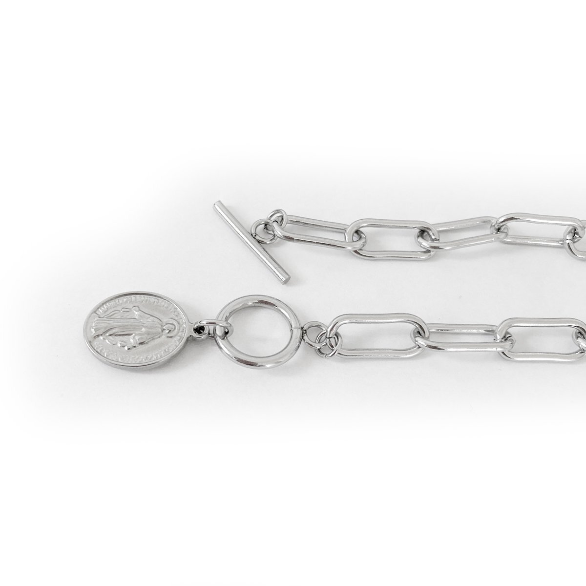 - ステンレス製 メダイチャームマンテルネックレス ロング小豆チェーン 幅約7.5mm 42cm MN07