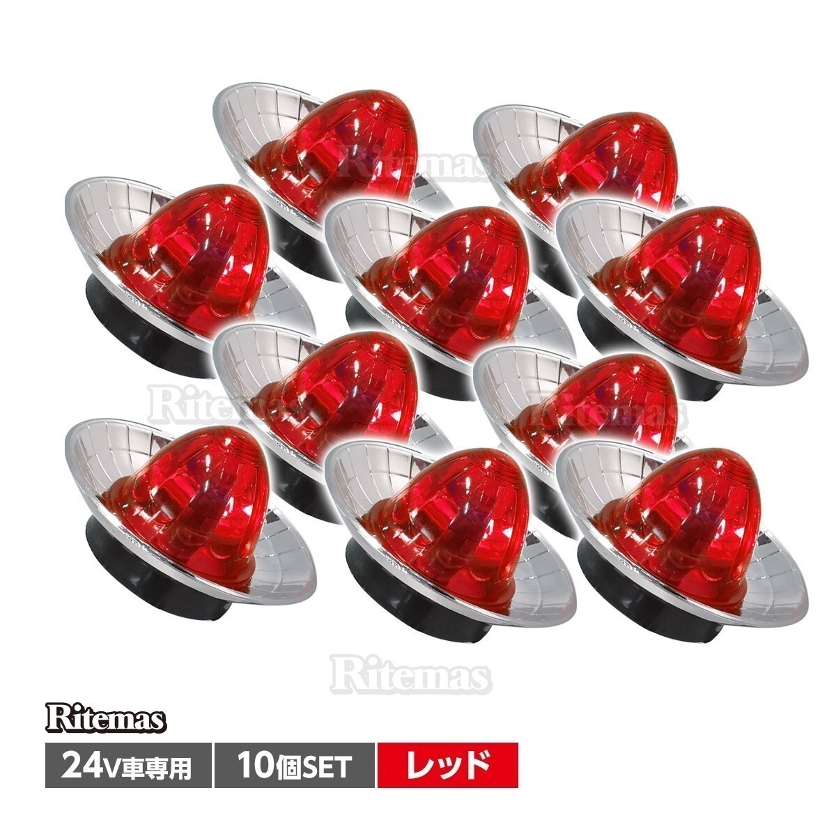 - トラック サイドマーカー メッキリング マーカーランプ ドアサイドマーカー デコトラ 汎用 24 専用 車幅灯 路肩灯 車高灯 レッド 10個