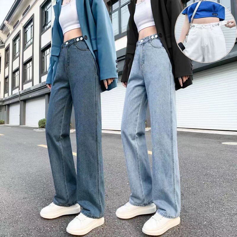 - デニムパンツ ストレート ワイドパンツ ジーンズ ハイウエスト 体型カバー ストレート 脚長効果 ロング 韓國ファッション ワイドルック ゆ