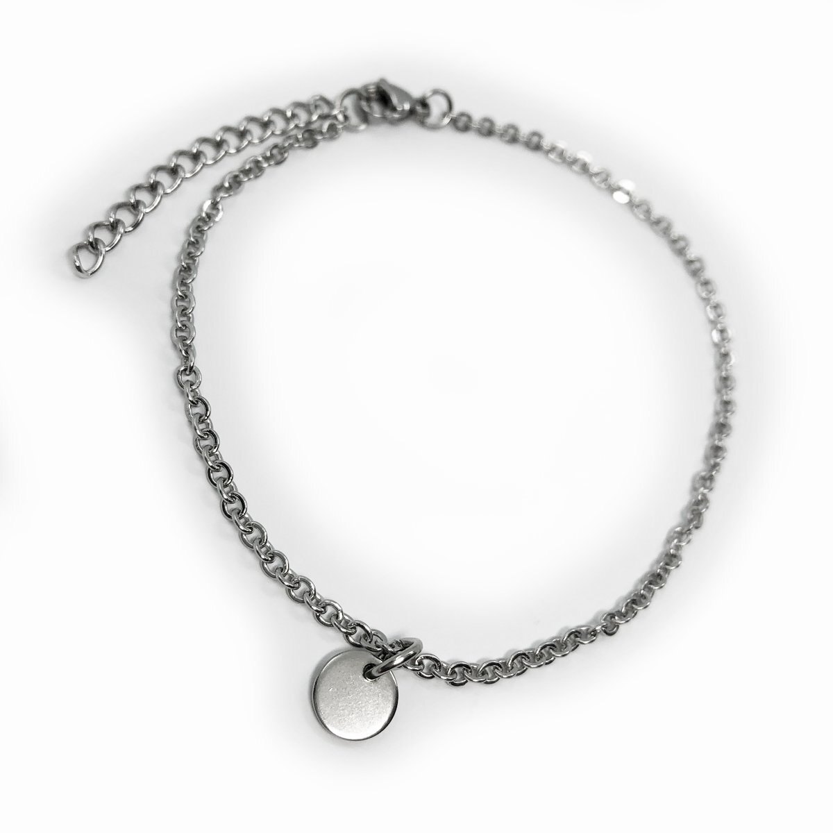 - ステンレスアンクレット 平小豆チェーン幅約2.5mm 29cm(25cm+4cmアジャスター) ラウンドチャーム GN48