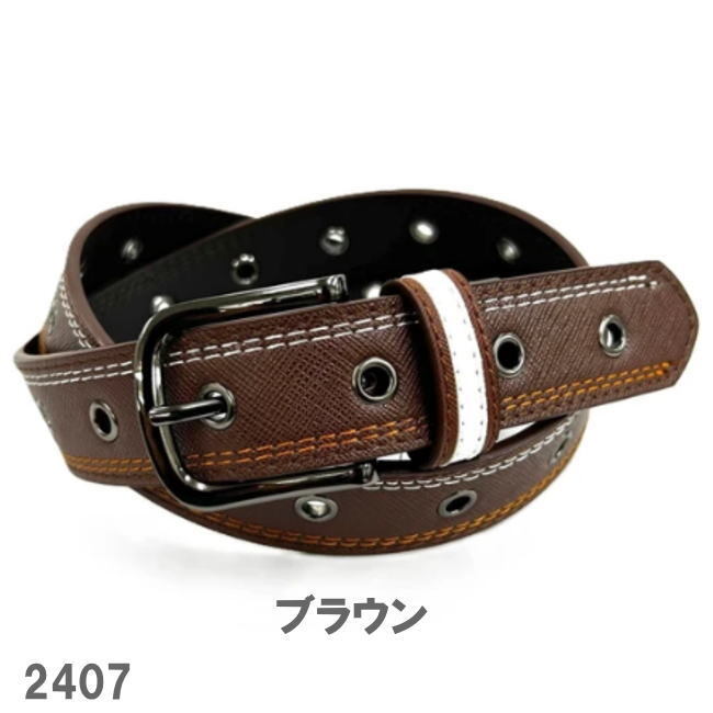 - ブラウン 2407 クロスメッシュ ステッチベルト 35mm 穴開け不要