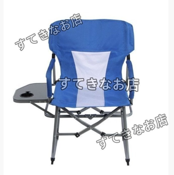- サイドテーブル付き 折りたたみ アウトドア チェア キャンプ 椅子 耐荷重 120kg テーブル付き 軽量 折りたたみチェア ブルー