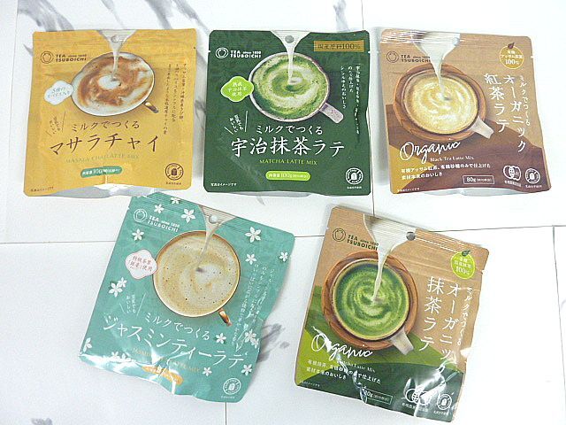 - T562① つぼ市製茶本舗 ミルクでつくるラテ 5種セット (宇治抹茶ラテ/抹茶ラテ/紅茶ラテ/ジャスミンティーラテ/マサラチャイ) ICE/HOT 粉末