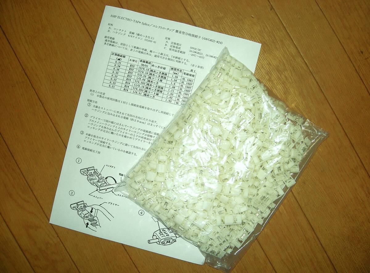> エレクトロタップ 白 新品 未使用 300個 配線 分岐 タップ 純正 AMP (タイコ)177766-1 電線径 AWG24~22/0.3~0.5mm2 取説付 送料無料