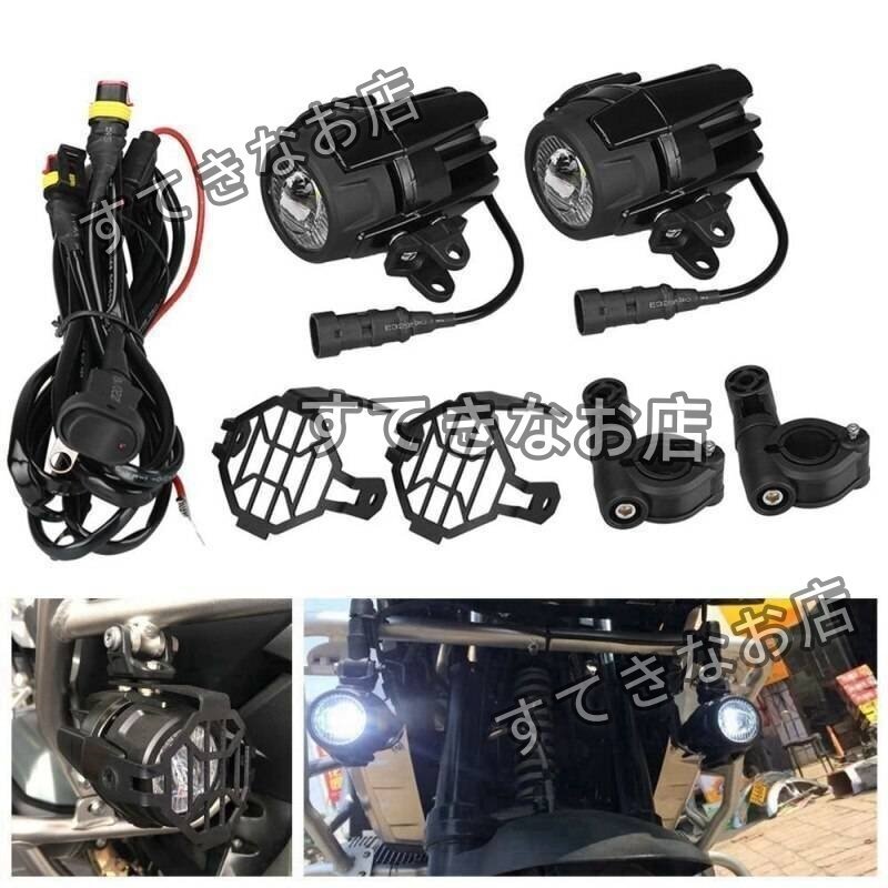 > オートバイ LEDフォグランプ & 保護ガード 配線 ハーネス カスタム BMW R1200 GS/ADV オートバイ LEDライト 6000 18K