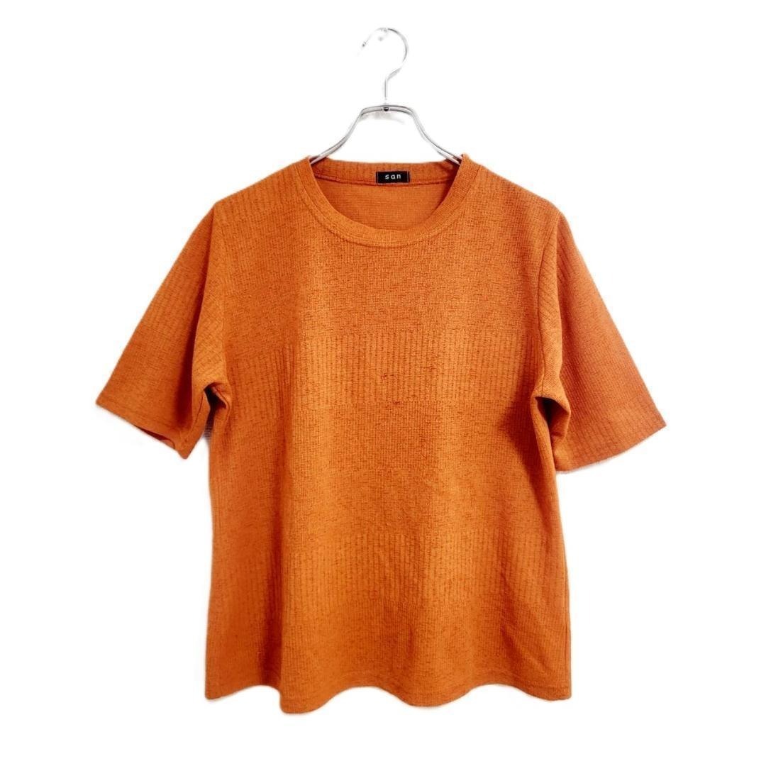 - san 半袖ニット Tシャツ オレンジ ストレッチ M リブ編み カジュアル 秋