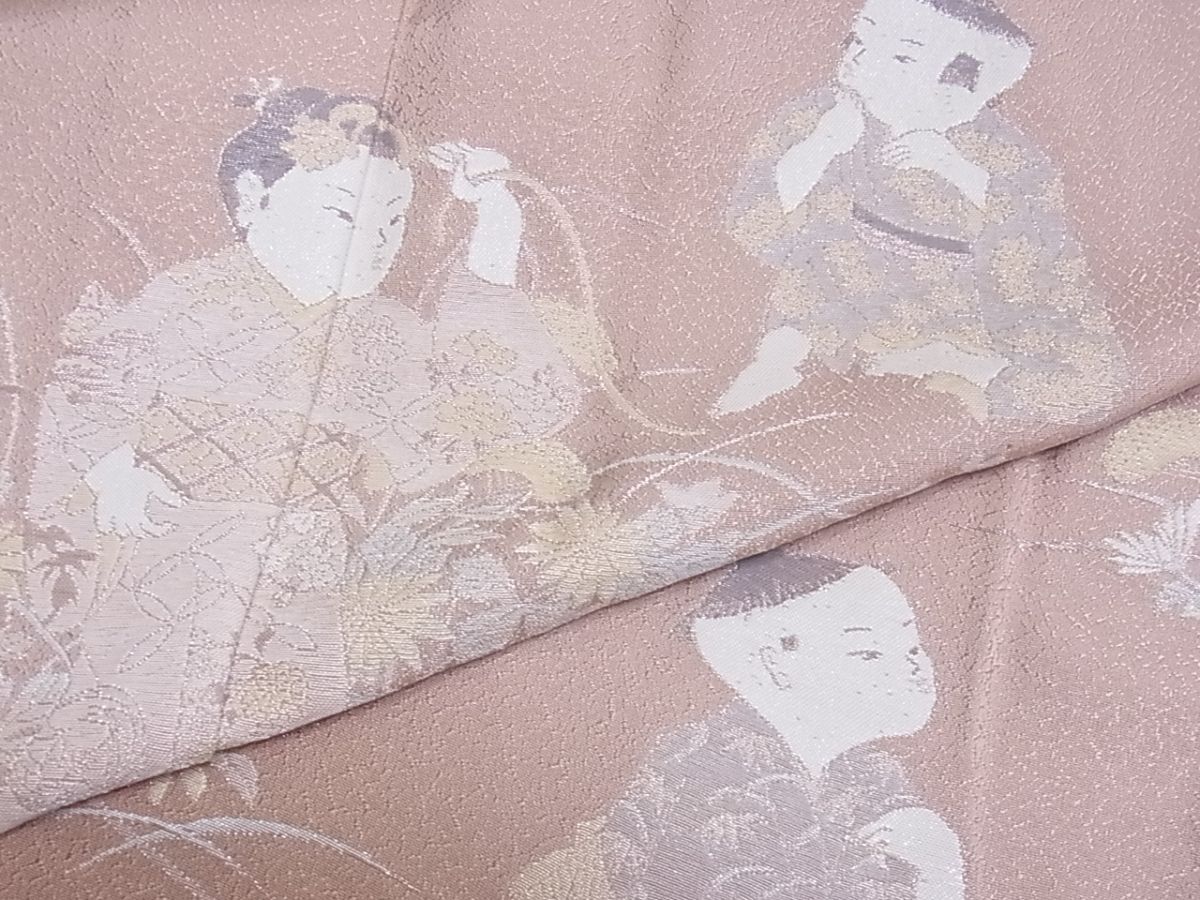 > eふれんず◆未使用品 訪問着 単衣 寿光織 童子草花文 銀糸 暈し染め 正絹◆am2391