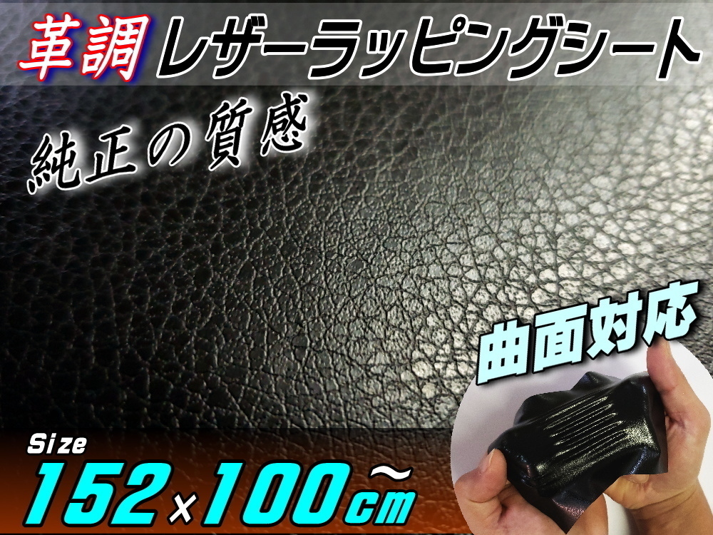 > レザーシート 黒 (大) 幅152cm×100cm~ カーボディラッピングシート ステッカー シボ加工 切り売り 純正 革張り 内装 カッティング可能 7