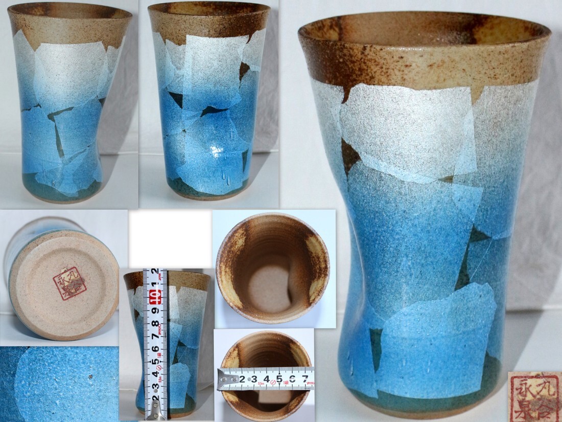 > 1498/中古・美品/九谷焼 九谷永泉 銀彩 フリーカップ ※湯飲み 湯呑み 焼酎カップ ビールグラス 酒器 青 ブルー