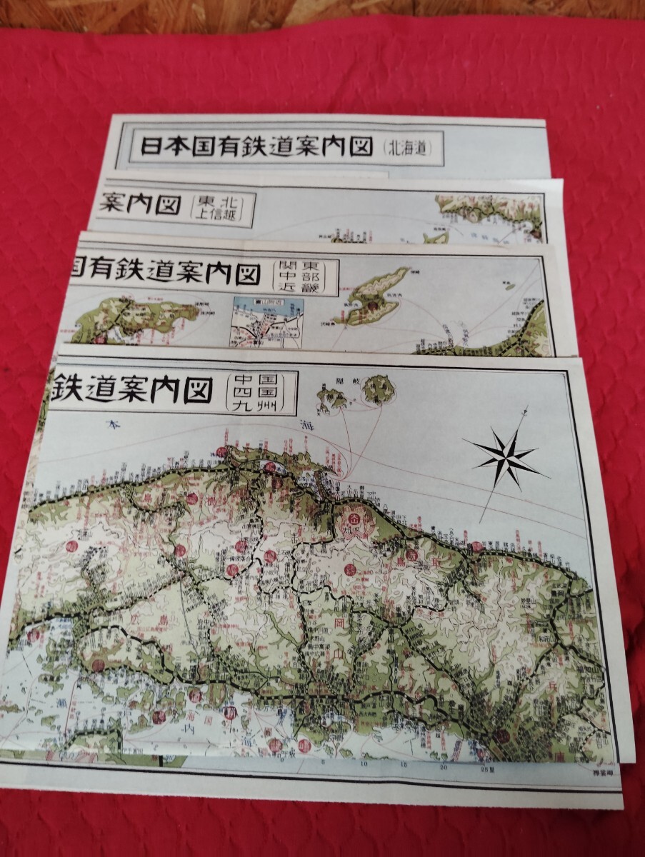 - 日本国有鉄道案内図 4枚 (北海道)東北、上信越) (関東、中部、近畿)(中国、四国、九州)