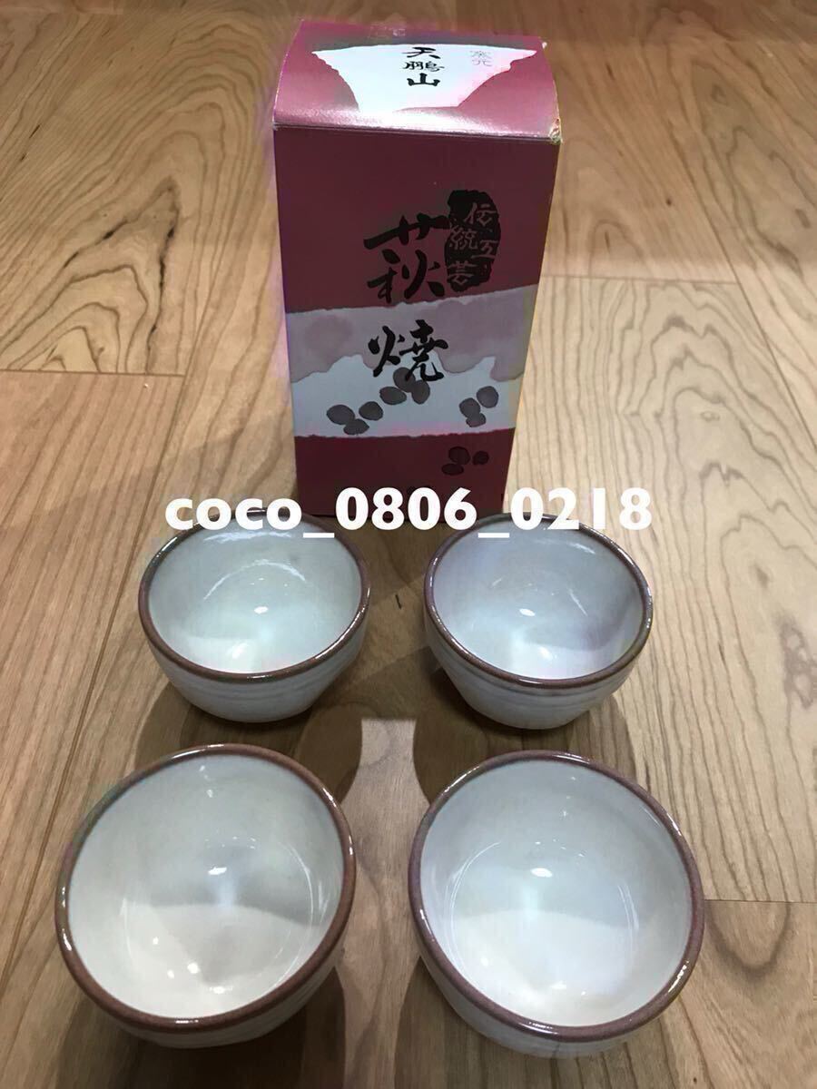 - ♪萩焼 ぐい呑み 茶碗 4個セットみしか長期保管 中古品扱い 経年劣化あり
