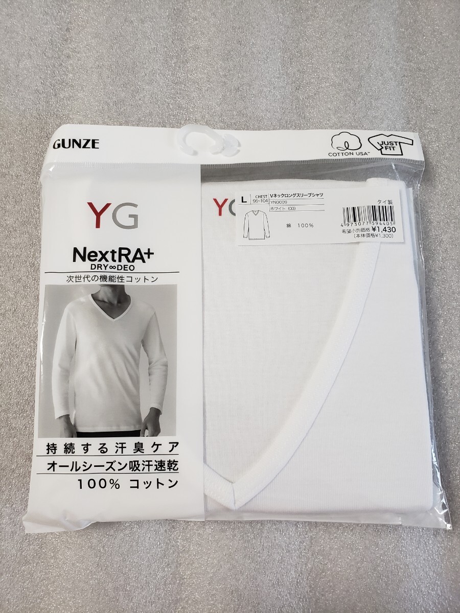 - Lサイズ 新品 未開封 GUNZE YG NextRA+ Vネックロングスリーブシャツ ホワイト 長袖 Tシャツ グンゼ 綿100% 汗臭ケア 吸汗速乾 白 ロンT