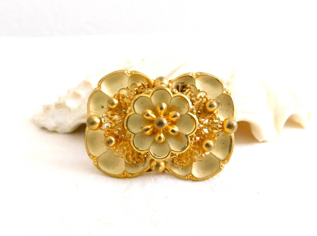 - ヴィンテージ ゴールドトーンフラワーモチーフの小さなアンティークブローチ ビンテージ フラワーモチーフ 古いブローチ