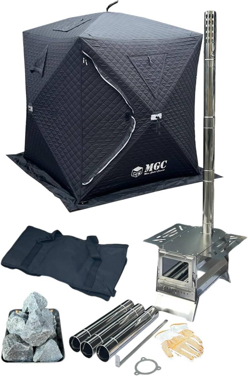 - サウナテント サウナセット テントサウナ セット 小型 縦185×横185×高さ180cm コンパクト 3人用 2人用 ロウリュ 薪ストーブ アウトドア