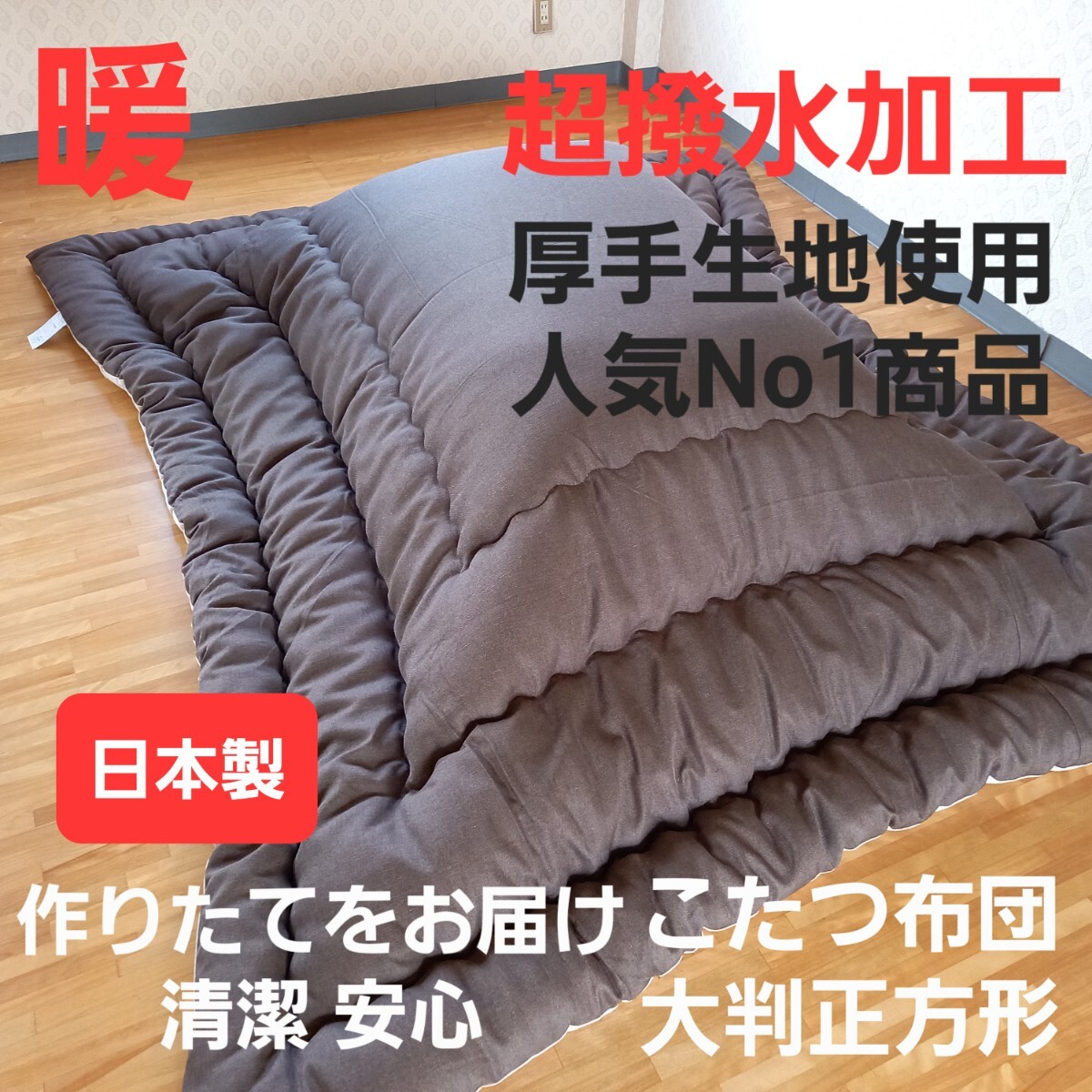 - 超撥水加工 大判正方形 こたつ布団 厚手 生地 こたつ ブラウン 清潔 安心 日本製 (羽毛布団 掛け布団 敷き布団 コタツ布団 枕)出品中