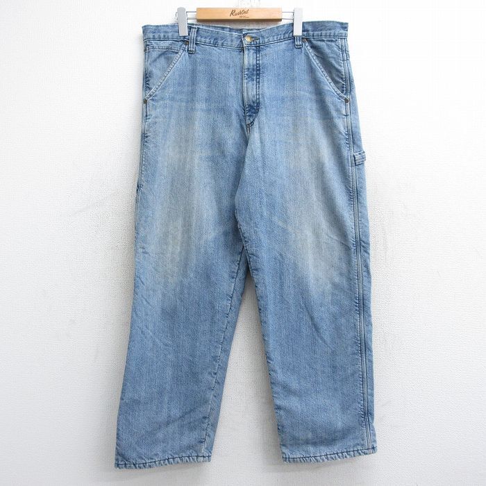 - W38/古着 ラングラー ペインター パンツ メンズ 薄紺 ネイビー デニム 内側フリース 25oct04 中古 ボトムス ロング