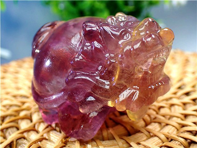 AAA級★天然フローライト(蛍石)龍亀置物YT3F8-59F01b