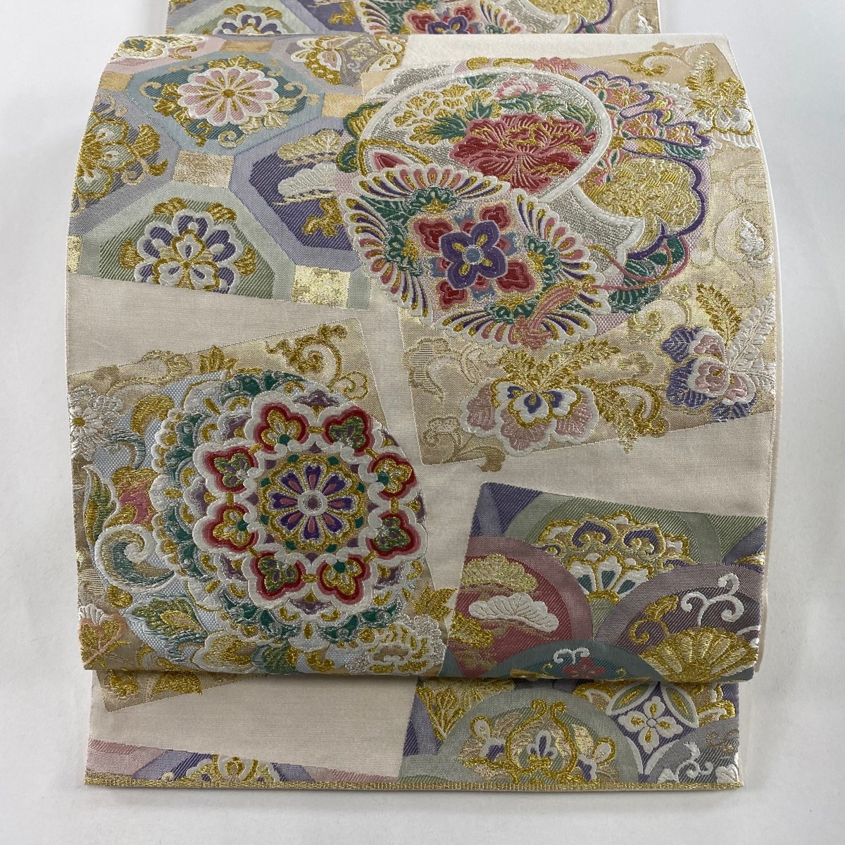 > 袋帯 秀品 華文 蜀江文 金銀糸 箔 クリーム 六通 正絹 【中古】