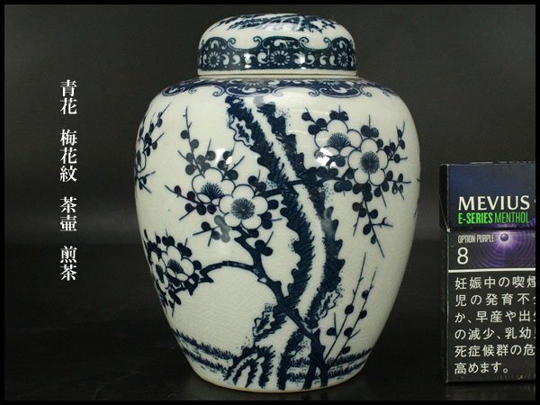 - 【銀閣】青花 梅花紋 茶壷 煎茶 高15cm 旧家蔵出 送料無料(YC81)