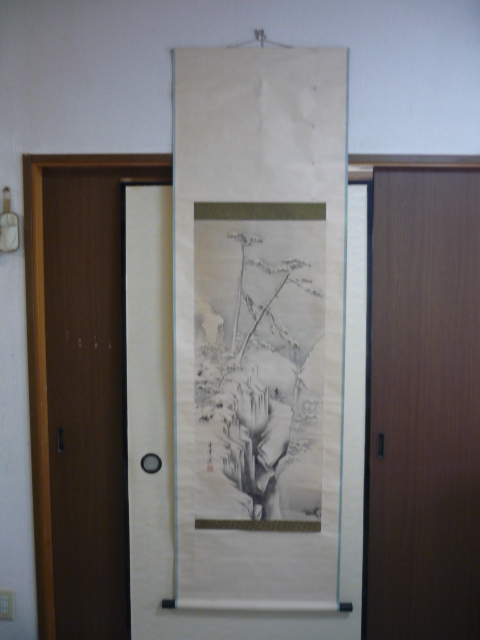 - 【模写】 掛け軸 立原杏所 水墨画 紙本 大きさ全体約192cmx58cm 紙本部分約103cmx44cm
