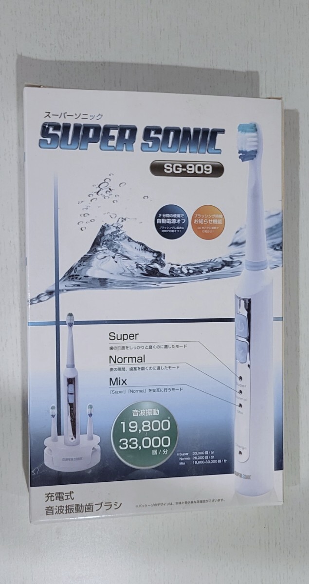 - 【歯ブラシ】スーパーソニック SG-909 音波式電動歯ブラシ 本体+替えブラシ3本付き