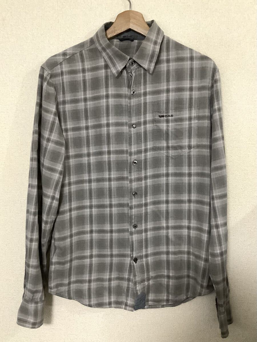 - GAS ガス チェック柄 長袖シャツコットンシャツ グレー ストリート カジュアル メンズ M