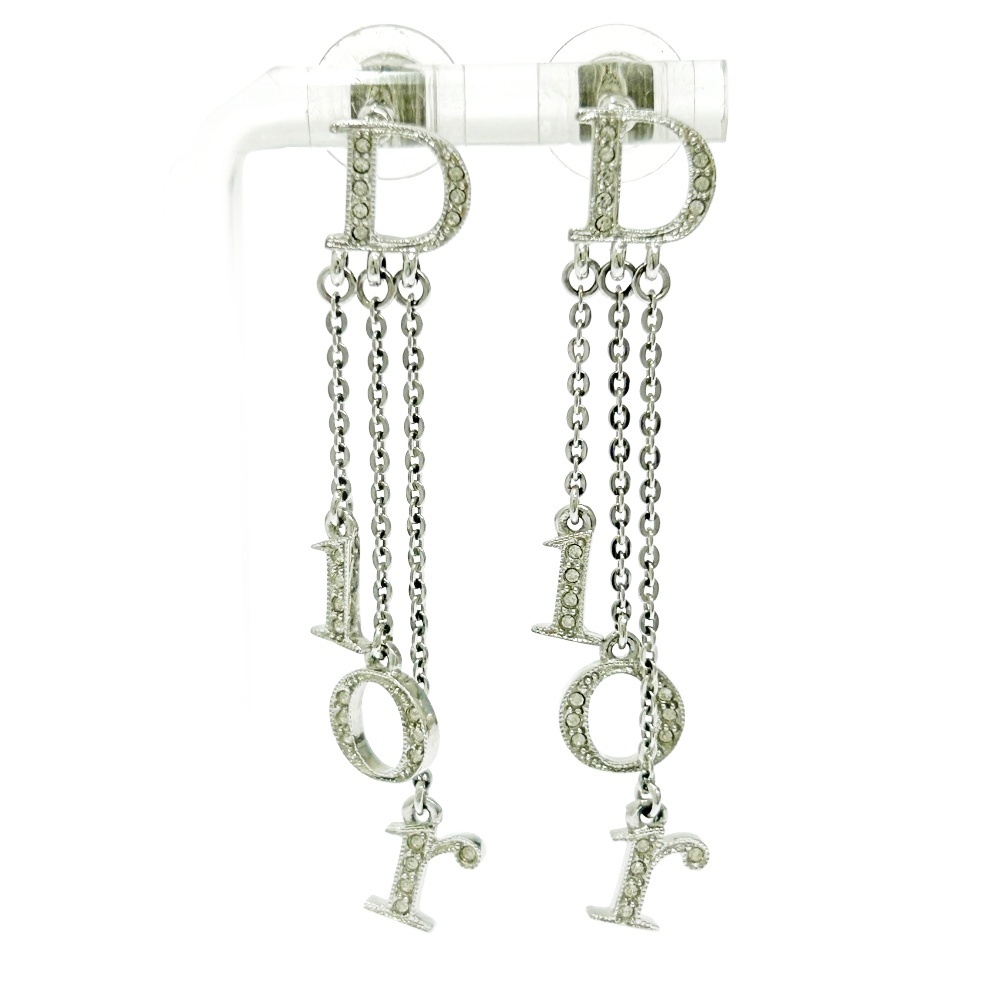 > 【箱付き】 Christian Dior クリスチャンディオール メタル ラインストーン Diorロゴ スイング ピアス レディース シルバー 491945 ピアス