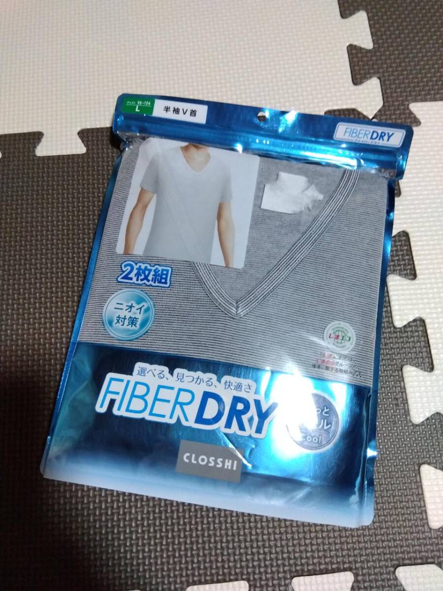 > L/2枚組/新品/しまむら FIBERDRY/メンズ ボーダー柄 V首 Tシャツ DRY 接触冷感 ニオイ対策 インナーウエア 春夏用