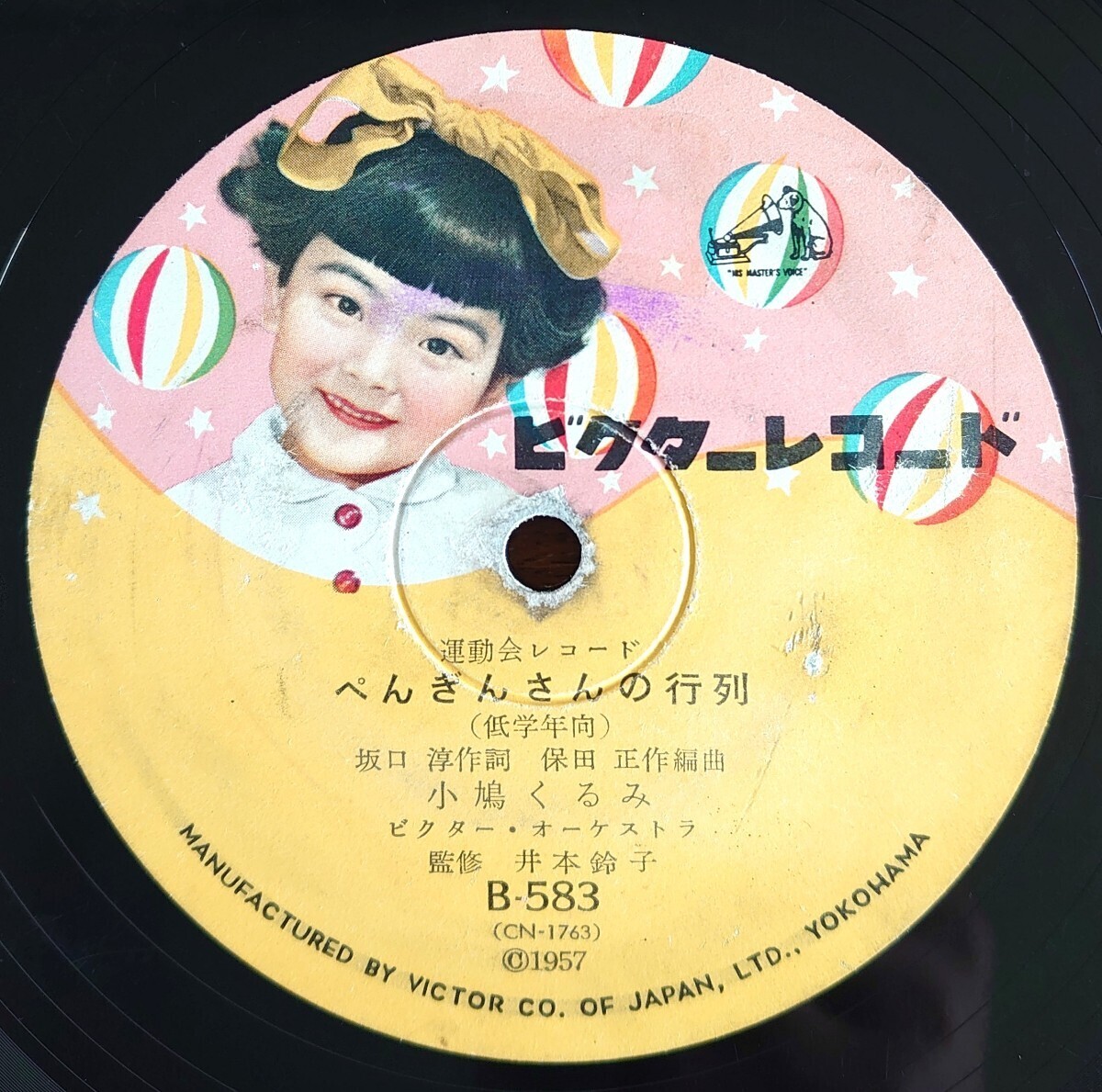 - 【SP盤レコード/縁アタリ】VICTOR B-583 運動会レコード/ぺんぎんさんの行列小鳩くるみ/はねましょとびましょ 大道寺重野