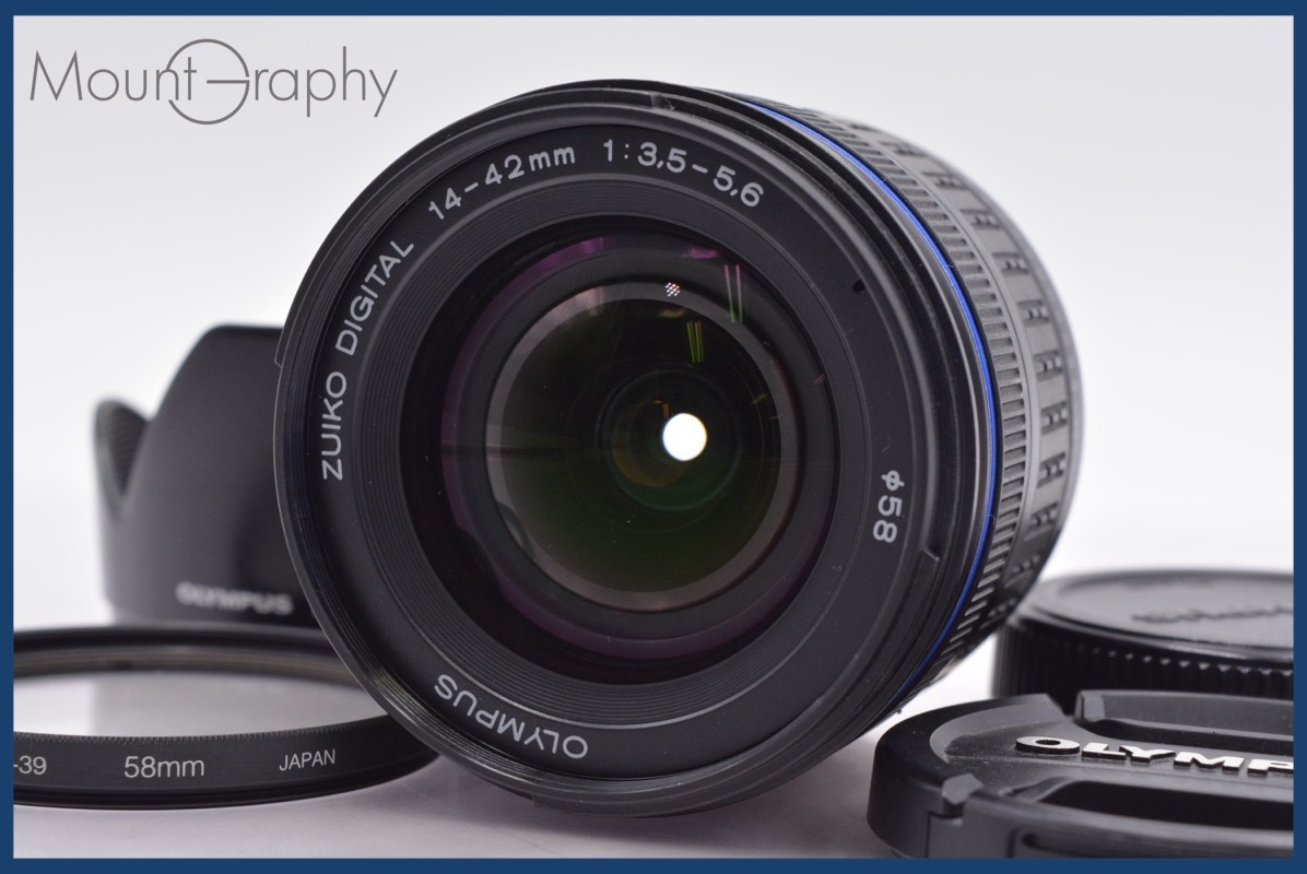 - ★極上美品★ オリンパス OLYMPUS ZUIKO DIGITAL 14-42mm F3.5-5.6 ED 前後キャップ&レンズフィルター、レンズフード付 ★完動★ #am384