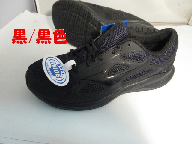 > 25,5cm メンズスニーカー ミズノマキシマイザー26 mizuno 黒/黒色 合成皮革と合成繊維 幅広 3E幅相当! お仕事履きに! 普段履きに!