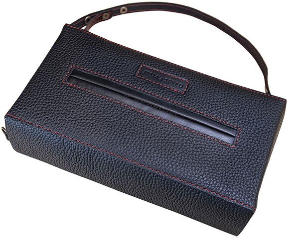 - M'z SPEED シートレザーティッシュケース 本革 ブラウニー ブラック×レッドステッチ