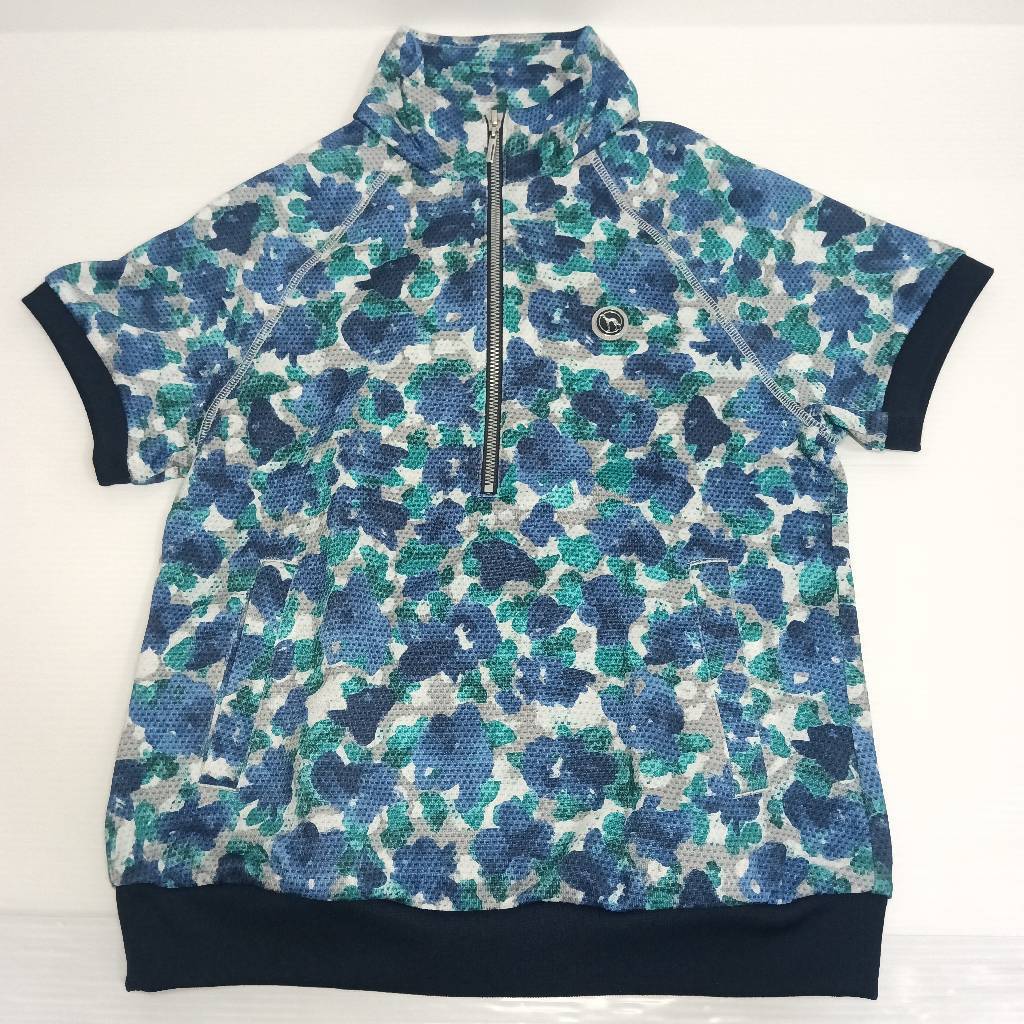- adabat アダバット ゴルフウェア シャツ 総柄 サイズ38 半袖 ブルー系 ハーフジップ スポーツウェア