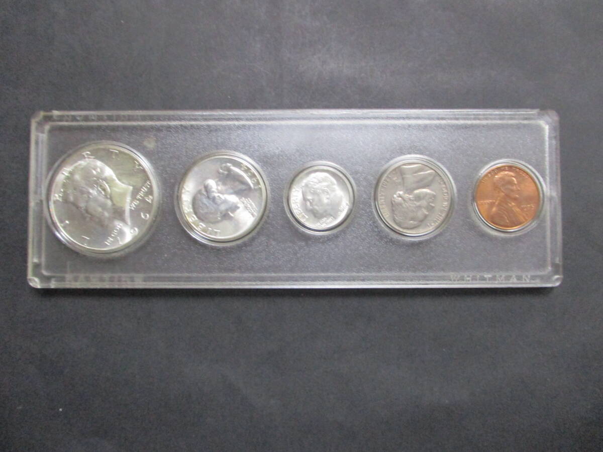 - ★アメリカ 1964年(ケネディハーフ・クォーター・ダイム銀貨)他 5種コイン ケース付きセット★