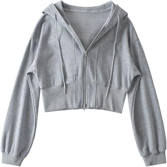 - パーカー スウェット ジップパーカー フード付き ショート丈 長袖 レディース