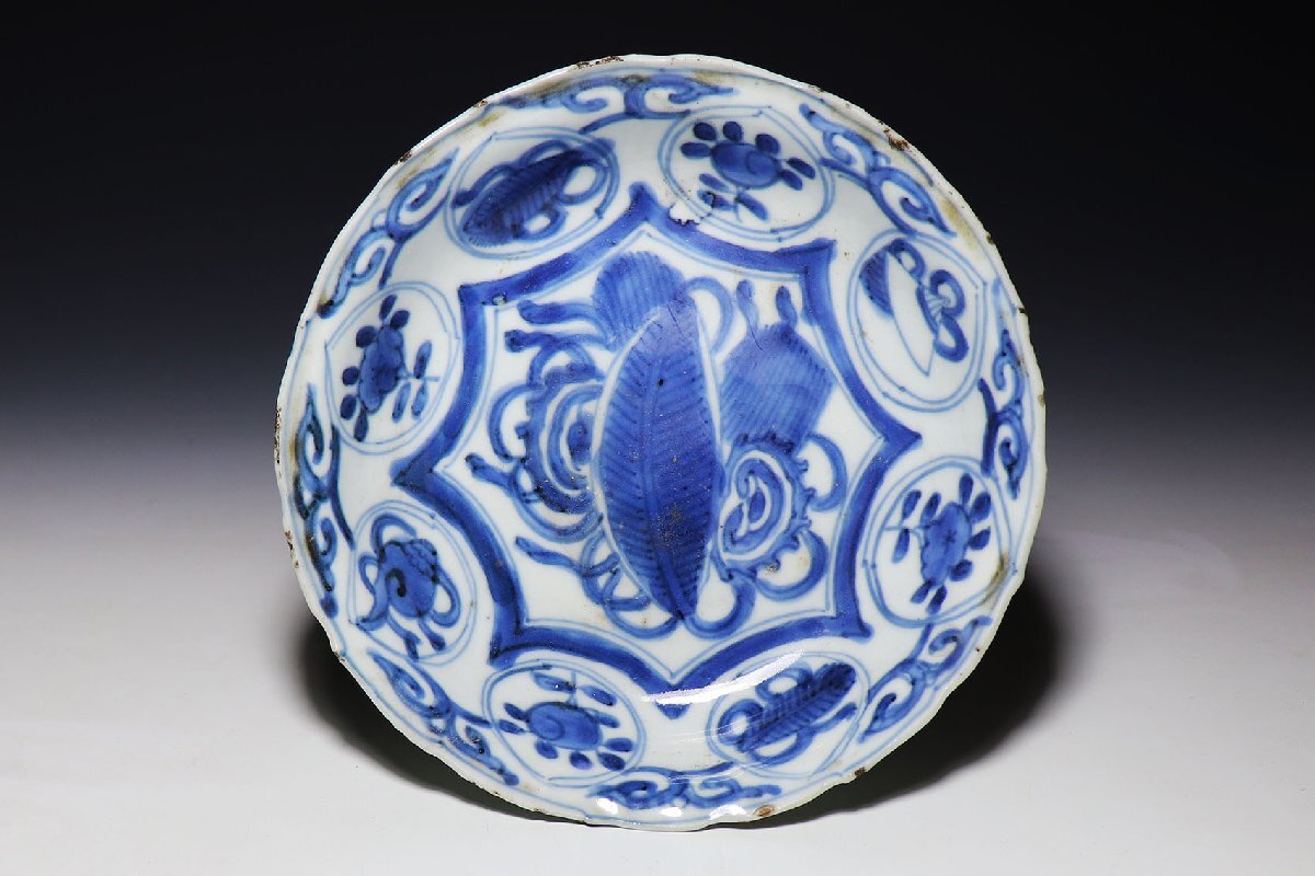 - 【桃】古染付:明末清初期染付木の葉図皿