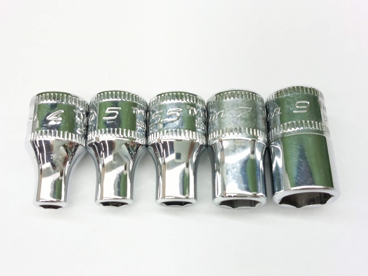 - 未使用 snap-on スナップオン 1/4 ショートソケット 6角 5個セット 不揃い まとめ売り TMM4~9 ②