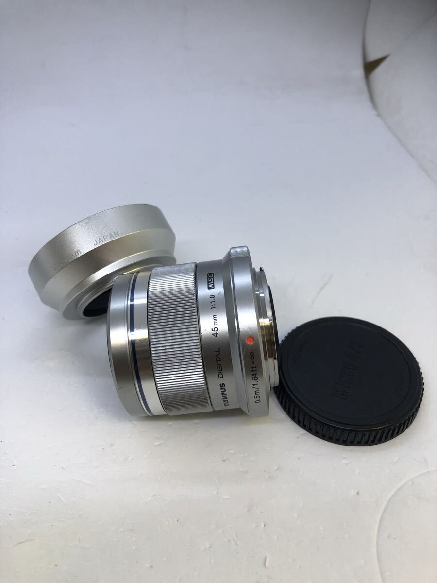 >  ★美品★安心動作保証付き★ オリンパス OLYMPUS M.ZUIKO DIGITAL 45mm F1.8 MSC シルバー ☆フード付き☆