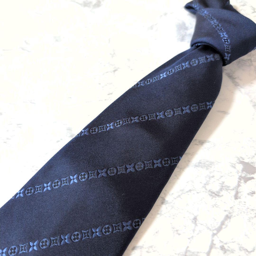 - 【極美品】Louis Vuitton ルイヴィトン ネクタイ モノグラム ストライプ ネイビー