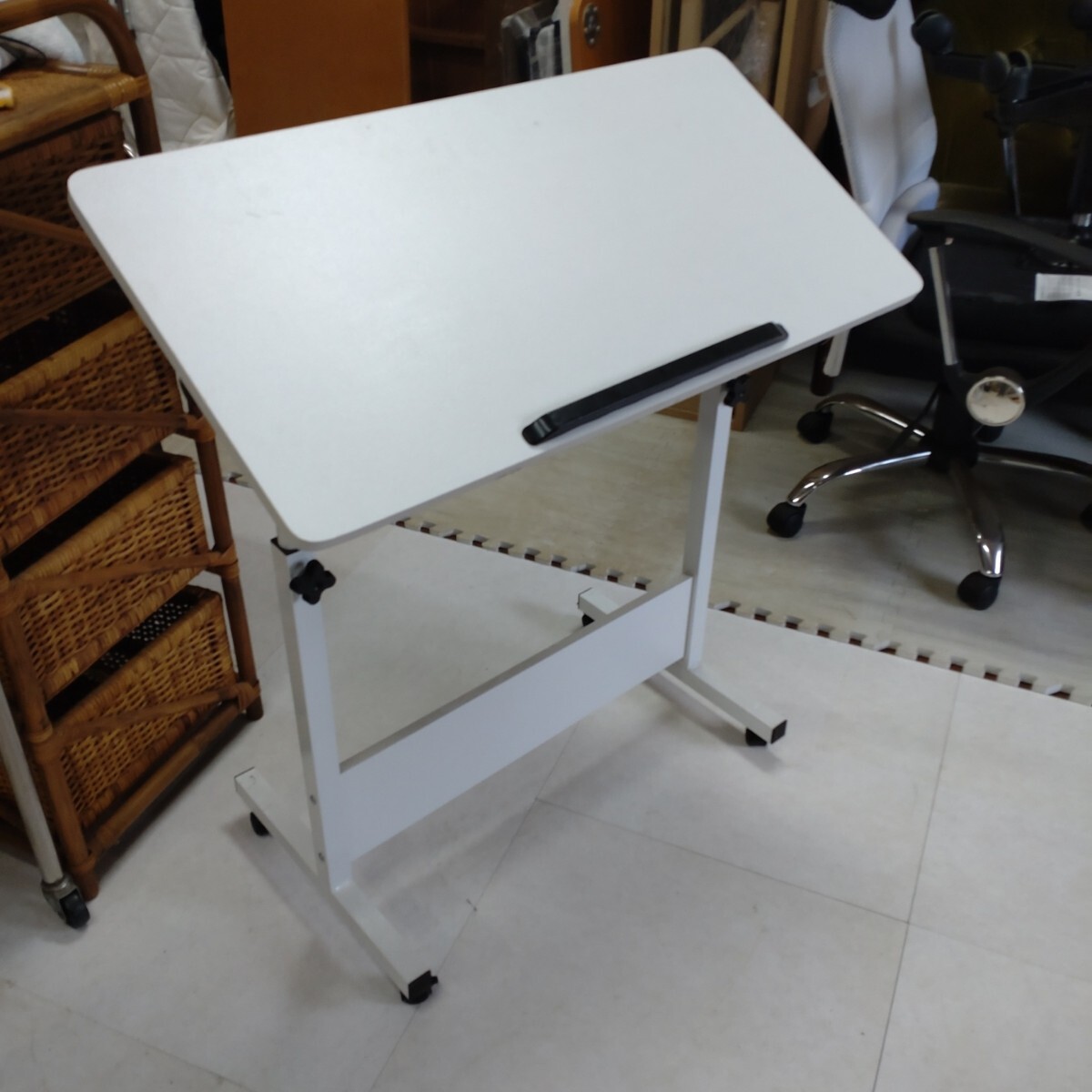 - 【店頭渡し推奨】 ベッドサイドテーブル サイドテーブル 読書台 タブレット台 キャスター付き 介護 高さ調節可 中古 現状渡し