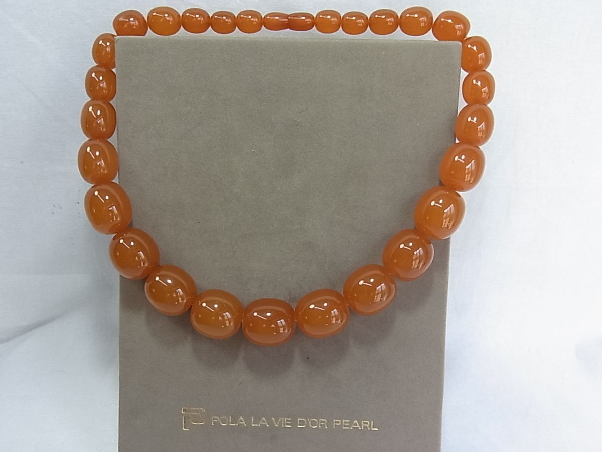 > 高級化粧品ポラ-化粧品メ-カの製琥珀ネックレス球サイズ21.1mm×11.2mm:長さ50cmポ-ラ-の共箱入新品では御座いませんが未使用状態の