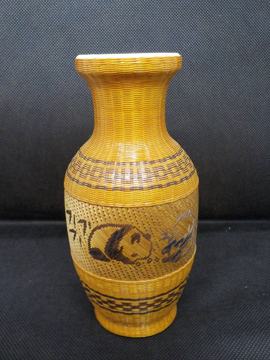 - ★四川★中国美術★古玩★竹編磁花瓶★竹瓷胎花瓶★パンダ柄★