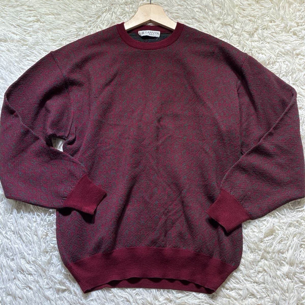 > 極美品/L相当◎LANVIN PARIS ランバン ニット セーター 総柄 ボルドー 赤系 イタリア製 メンズ 紳士服 トップス 希少品 古着 ヴィンテージ